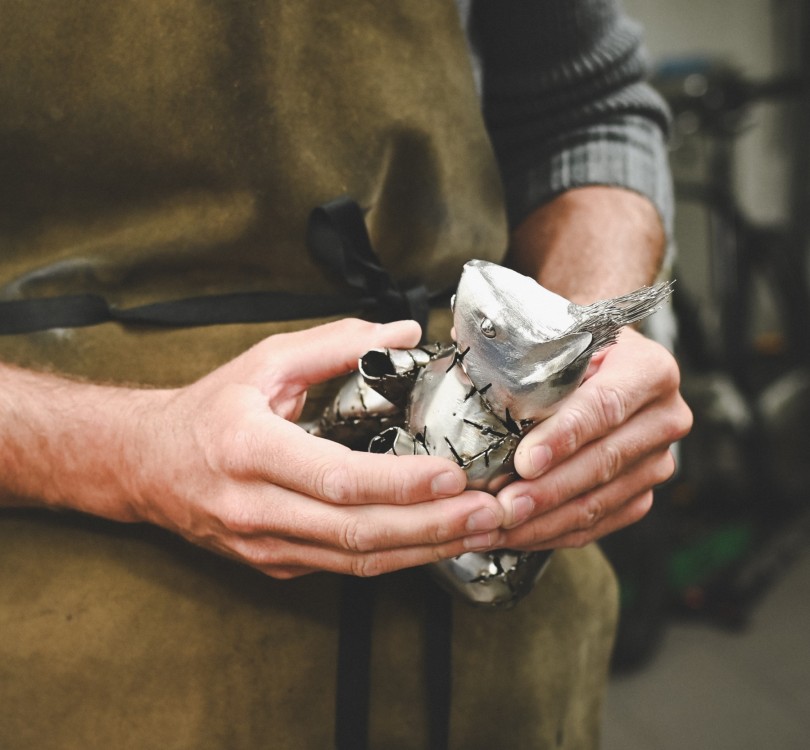 „Mein Handwerk ist für mich kathartisch. Es erlaubt mir, meinen Gedanken freien Lauf zu lassen, ihnen Form zu geben, sie nicht auf Papier, dafür aber auf Edelstahl zu bringen.“