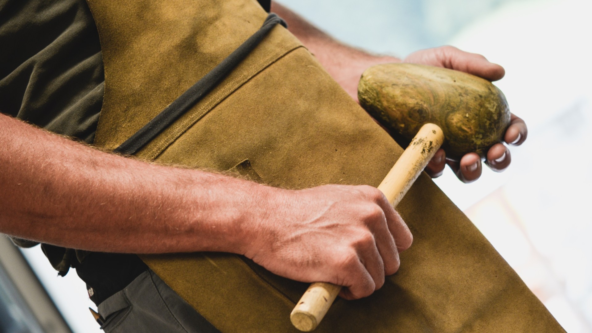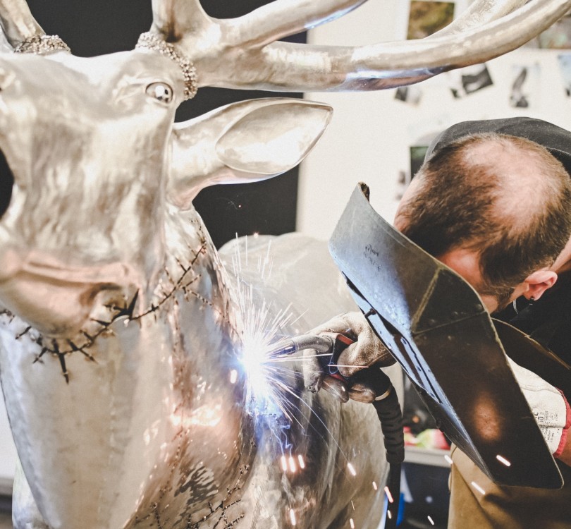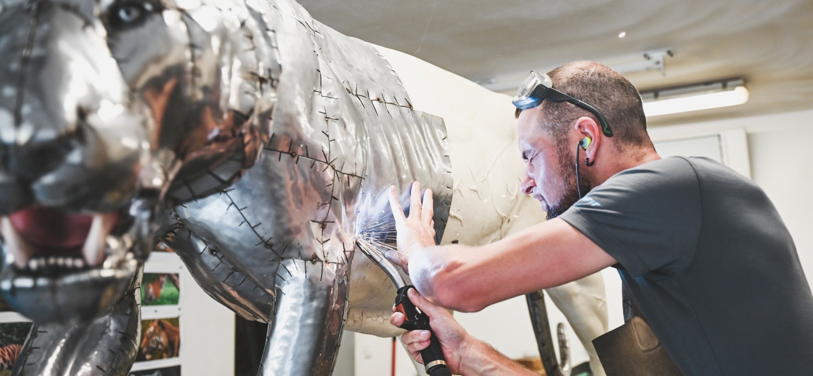 So entsteht eine in mühsamer Handarbeit und mit unglaublich viel Fingerspitzengefühl gehämmerte Skulptur aus Edelstahl. Der gesamte Prozess kann bei großen Skulpturen schon mal bis zu 1.000 Arbeitsstunden in Anspruch nehmen. Gut Ding will eben Weile haben!