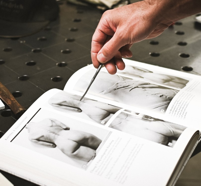 Hat er sich für ein Motiv für seine Skulptur entschieden, macht sich Friedrich daran, dieses bis ins kleinste Detail zu studieren. Er recherchiert und lernt die Eigenheiten des Tieres oder des Objektes kennen. Dann, mit einem Foto oder einer Skizze als Vorlage, macht er sich ans Modellieren.